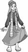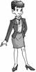 T: Yes. The woman is wearing a black skirt and a red blouse. Talk about other pictures