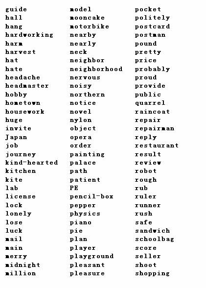 英语学科的考试以中华人民共和国教育部2000年3月制订并颁布的《九年义务教育全日制初级中学英语教学大纲(试用修订版)》为依据,兼顾人民教育出版社和朗文出版集团有限公司合作出版的《九年义务教育三年制初级中学教科书 英语》和北京出版社出版的《九年义务教育三年制初级中学教科书(试用本)英语》的教学内容。