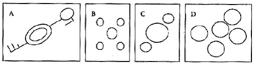 1. A。解答此题,必须依次弄清田地里留下的圆圈的形状。1978年发现的是中间有一个直径约为6米的大圆,周围分布着4个小些的圆。即如图B中的样子。三年后另一农民发现的几个直径约为15米的大圆,他们几乎差不多大,即如图D所示的那样。就在同一年,又有一个农民发现三个圆,一个大些,另两个小,大圆在小圆的中间,如图C所示。而科学家身后的圆圈与别的都不同,由此可以找到答案A。
