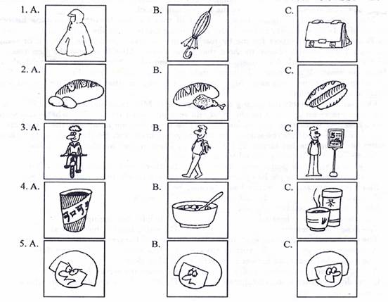 根据你听到的内容从每小题的三幅图片选项中选出一个正确选项。