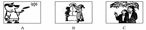 根据所听句子的内容和所提的问题,选择符合题意的图画回答问题,![]()