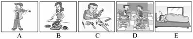 Ⅰ.听句子,选择与句子内容相符的图片。句子读一遍。(5分)