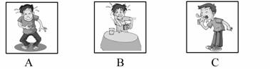 ( ) 8. A. He has a cold. B. He has the flu. C. He has a headache.