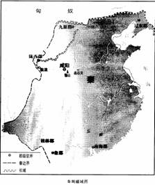 5.读下面“秦朝疆域图”回答问题:(69页)