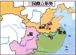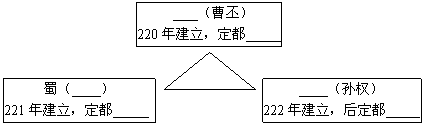 ⑵.结合右图将下列三国鼎立的示意图补充完整:(12分)
