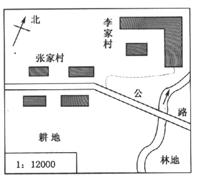 4、最近,某实验学校开展了一项社会调查活动,让每位同学调查自己家乡的发展历程,并对未来的发展提出自己的意见和建议。右图是初一(1)班李强同学家乡的地形图,请你试着帮他解决以下问题:(16分)