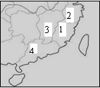 1、右图中表示浙江省的是 ( )