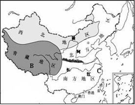 图三B、C两地分属我国不同的地理区域,理应结合实际,共谋发展。(8分)