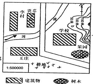 (4)王明同学从位于王庄的家里到学校的路程,图上距离是1.5厘米,请你算一算实地距离是多少千米? ___________(2分)