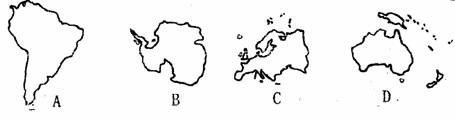 5、读下列四个大洲轮廓图,位于最南端的大洲是( )