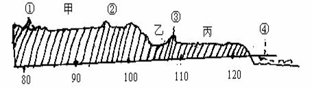 (3)、此地形剖面图证明我国的地势特点是___________ __ ____ ___,造成我国多数河流的流向是_______ ___________。