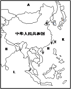 2、读下列《中国及周边地区示意图》,完成相关题目。(每空1分,共15分)