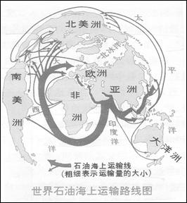 (1)、请写出海湾石油运输路线,(经过海湾主要通道,目的地),至少三条。(6分)