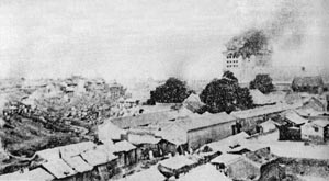 在八国联军炮火下燃烧的北京城