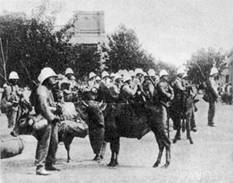 [课程导入] 你了解义和团吗?它是由山东、河北一带民间秘密反清组织义和拳发展而来的。随着帝国主义侵略势力尤其是教会势力的深入,义和团反帝爱国运动兴起,英勇抗击八国联军,沉重打击了帝国主义侵略势力。 义和团团员 说到1860年英法联军占领北京、火烧圆明园的屈辱史,你一定不陌生。可你知道吗,40年后北京再度被侵略军攻占。这是什么军队犯下的暴行呢?他们为何而来?侵占北京后还干了哪些罪恶勾当?你一定想了解吧!