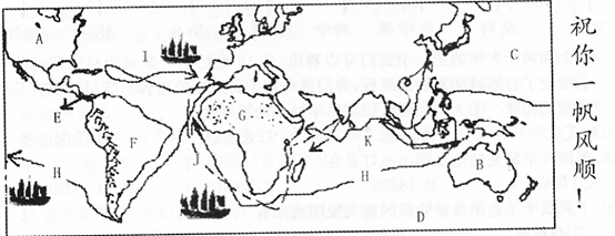 (1) 连一连:在15世纪末16世纪初,欧洲相继出现了三位著名的航海家,开辟了新航路。请你把上图H、I、J三条新航路与它们的开辟者及结果用线连起来。(6分)