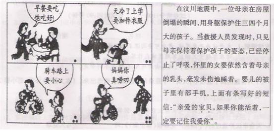 (2)(8分)根据情境A、B,结合自己的实际,谈谈你对父爱母爱的感悟。