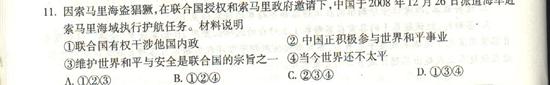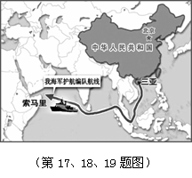 17.(2009年台州市)2008年12月26日,我国政府响应联合国安理会决议精神,派遣海军舰艇编队赴亚丁湾、索马里海域执行护航任务,打击索马里海盗。这一行动说明了A