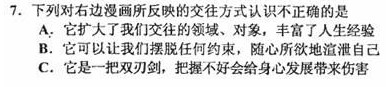 A、初中学生难以琢磨多变无常 B、过度自尊会严重影响同学交往