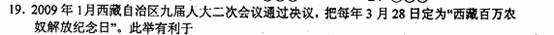 2009河北省文综中考 50年前的民主改革是西藏历史上最广泛、最深刻、最伟大的社会变革。回答24-25题。