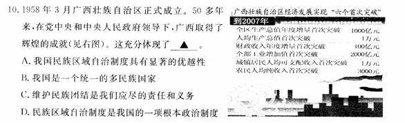 9.在宁夏回族自治区成立五十周年之际,中央代表团向自治区赠送了“民族团结宝鼎”。这是因为维护国家统一和民族团结是