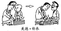 7.(2007,四川自贡)“慈母手中线,游子身上衣。临行密密缝,意恐迟迟归。准言寸草心,报得三春晖。”唐代诗人孟郊的这首诗体现了 ( ) ①天下父母对子女的关爱之情 ②子女对父母的拳拳报恩之心. ③孝敬父母是中华民族的传统美德 ④爱是双向的、互动的,爱和被爱相辅相成 A.①②③ B.②③④ C.①②③④ D.①③④ 8、(2007,山西太原)下图反映了 ( )