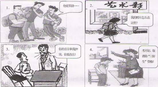 (1) 四幅图片中的行为分别侵犯了公民的哪种人格尊严权?(4分)