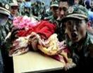 材料二:2008年5月12日,我国四川省汶川发生里氏8.0级地震。下面是几幅抗震救灾感人照片。