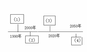 4、下图是我国经济社会发展阶段图示,请补全空缺的内容(提示:我国经济社会发展目标:如三步走发展战略)(8分)