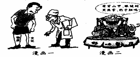 2.漫画一、漫画二分别反映了我国目前消费领域中存在的哪些问题?(4分)