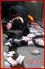 2006年3日15点30分,一辆牌号为赣GA2540的中型面包车与一辆牌号为赣G07731的出租车在位于九江市庐山路信华游乐中心旁边的十字路口相撞,面包车侧翻在地,车上两人被摔出车外,司机被卡在变形的车头内动弹不得,奄奄一息。更令人惊讶的是,一个装满了百元大钞的黑色塑料袋摔出后破裂,里面的钞票撒满了大街……随后,感人的一幕发生了:市民们有的自觉拉起了警戒线,有的看护着地上的钞票,有的拨打110报警。几分钟后,急救车赶到了现场,终于将奄奄一息的司机抢救出来。事后,民警将收集起来的钞票进行清点,发现20万元巨款一分不少。