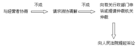 ①与经营者协商和解;②请求消费者协会调解;③向有关行政部门申诉;④根据与经营者达成的仲裁协议,提请仲裁机构仲裁;⑤向人民法院提起诉讼。