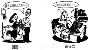 镜头一:某星级大酒店一豪华包间。十几个初中生为同学小丽过生日。桌子上堆满了吃剩并丢弃的美味佳肴。他们有的在炫耀自己的手机,有的在翻看小丽花了近二千元拍的一套写真照片,有的在谈论小军用一千多元刚买的耐克鞋……