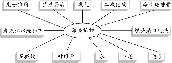 下面是某班同学由“藻类植物”所想到的内容。请你仔细琢磨这些内容与“藻类植物”之间的联系。
