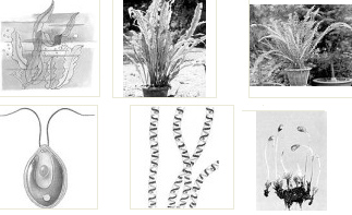 请一位同学仔细观察下面几幅图,然后心中默想其中一种植物,其他的同学向他提问,比如“是否绿色?”“有没有根?”等,该同学只能回答“有”或“没有”、“是”或“不是”,全体学生通过问答,共同猜测这位同学在想哪一种植物。