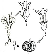1.(2009济宁学业水平)如图是南瓜的发育过程示意图,请据图分析作答: