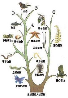 原始的[④] 直接进化来的。 ⑵裸子植物和[③] 植物的共同祖先是原始的蕨