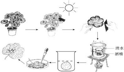 ⑤取出叶片,用清水漂洗干净。然后放在培养皿里,向叶片滴加碘液。