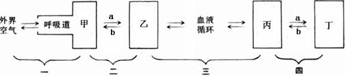 (2) 图中甲、乙、丙、丁分别代表人体的哪些结构:[ 甲 ]___________________;[乙]___________________;[丙]___________________;[ 丁 ]___________________。