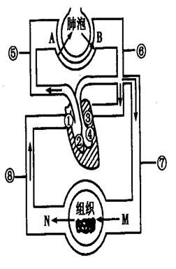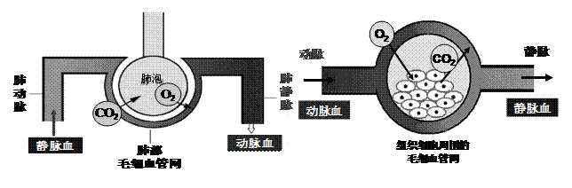 例3、(2008江苏苏州)右图是血液循环和气体交换示意图,请据图作答: