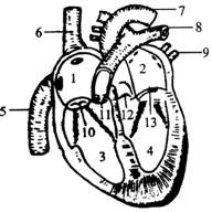 充满静脉血的心腔有 1、3 ,血管有 5、6、8 。