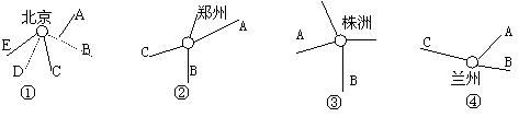 2. 填注下列铁路交会的铁路枢纽站的名称: