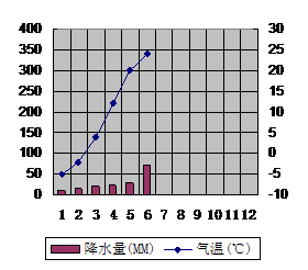 (1)根据表中的数据,在下图中将“各月平均气温曲线和月降水量柱壮图”补充完整。(2分)