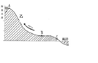(2)山地甲、乙两坡降水较多的是_______坡,原因是________________________。