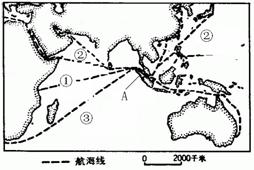 (3)图中航线③表示,大型轮船不能通过航线①,只能绕道非洲