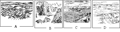 2)、地形A与地形D的相同点是 ,区别是 ,