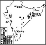 16.读“印度主要工业和工业原料分布图”,回答问题。