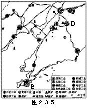 (2)主要工业城市有:A__________ B__________ C__________ D__________