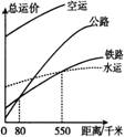 5.当运距80到550千米时,运费最低的运输方式是 ( )