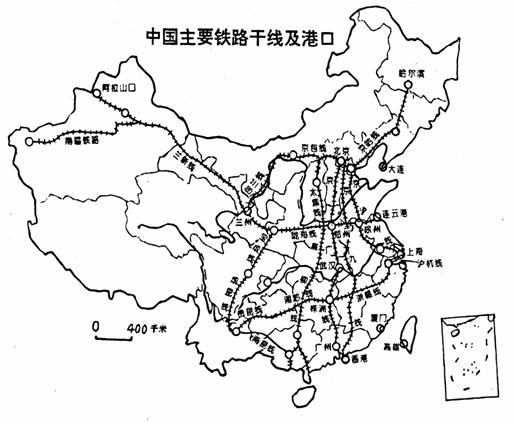(3)、龙岩某公司想从新疆购进一批羊毛,请你帮他设计一条近便的铁路线。